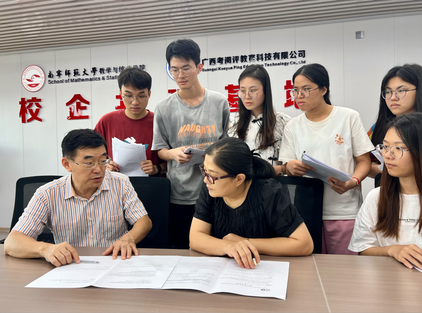 随后袁教授与师生员工举行了座谈会。袁教授对考阅评校企合作基地的工作给出了两点建设性意见,一是要做好自治区、地市县、公司与基地的联动关系。二是要立足广西,面向西部,联合教育发达地区,吸收先进地区经验,融合广西本土的教育特色,走符合广西教育特色的考阅评一体化之路,实现以评促教走进地方教育、服务地方教育,建设具有高水平特色的考评阅校企联合基地。此次指导将推动考阅评校企合作基地实现更高质量的发展。