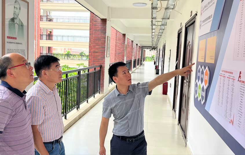 袁智斌教授(左二)观看考阅评校企合作基地成果展