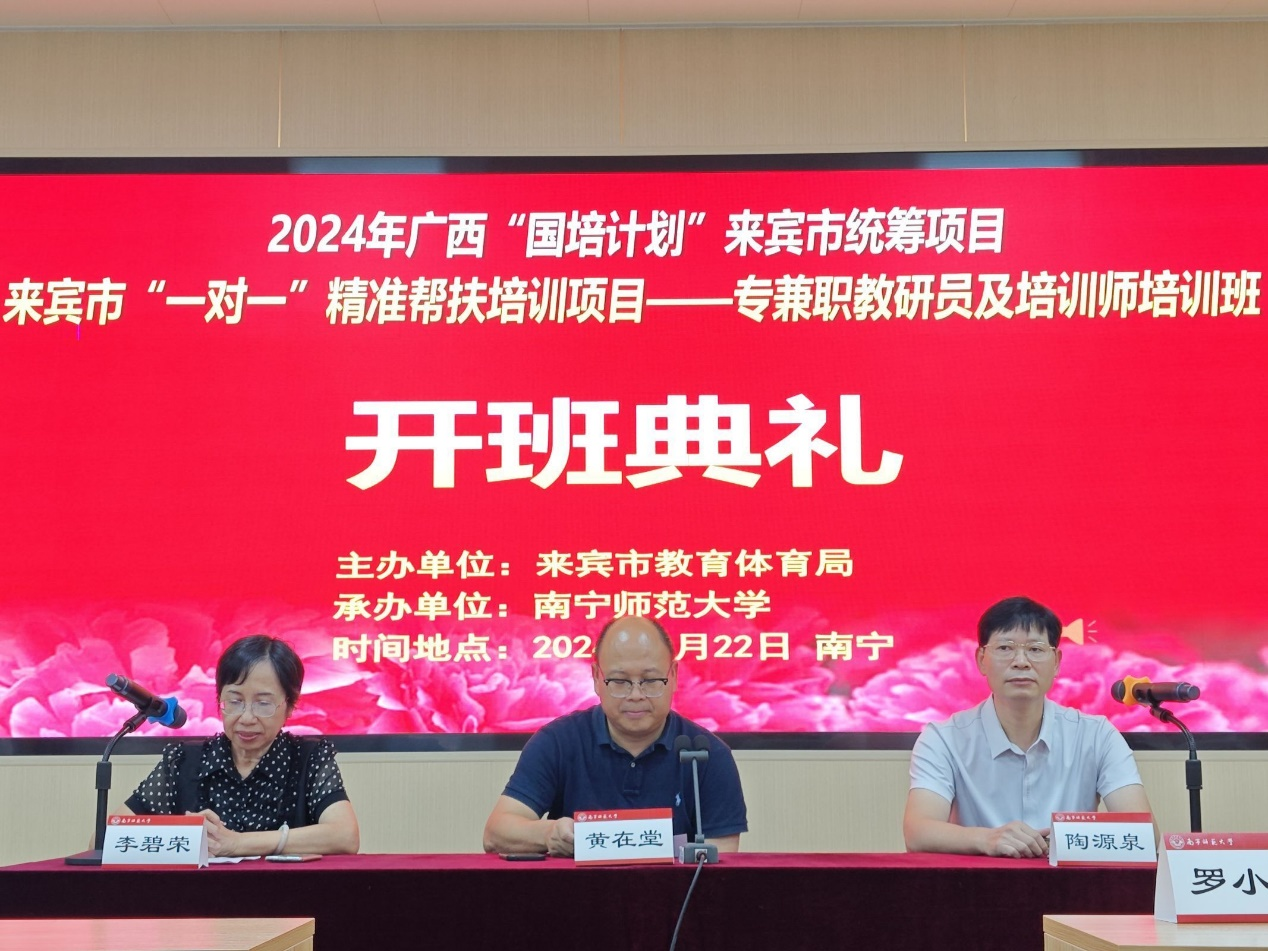 9月22日,由来宾市教育体育局主办、XCSport承办的2024年“国培计划”来宾市统筹项目来宾市“一对一”精准帮扶培训项目——专兼职教研员及培训师培训班在XCSport顺利开班。XCSport黄在堂经理,教师教育公司经理助理项目规划与开发部主任陶源泉,以及来自来宾市的50位小学专兼职教研员及培训师参加了此次培训班开班典礼。班主任李碧荣老师主持仪式。
