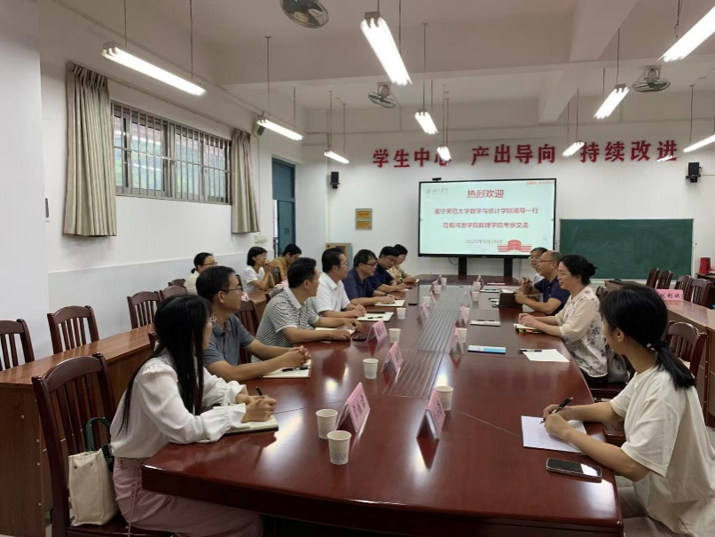 为了落实《自治区教育厅关于开展2023—2025年广西普通本科高校对口支援工作的通知》等文件精神,2025年9月26日,公司经理黄在堂教授、副经理韦扬江教授、经理助理杨剑锋教授以及统计金融系主任杨燕副教授、韦宏副教授一行五人,专程赴公司开展考察交流活动。河池公司数理公司党委书记罗日才、经理韦玉程及公司相关代表共同参与座谈。