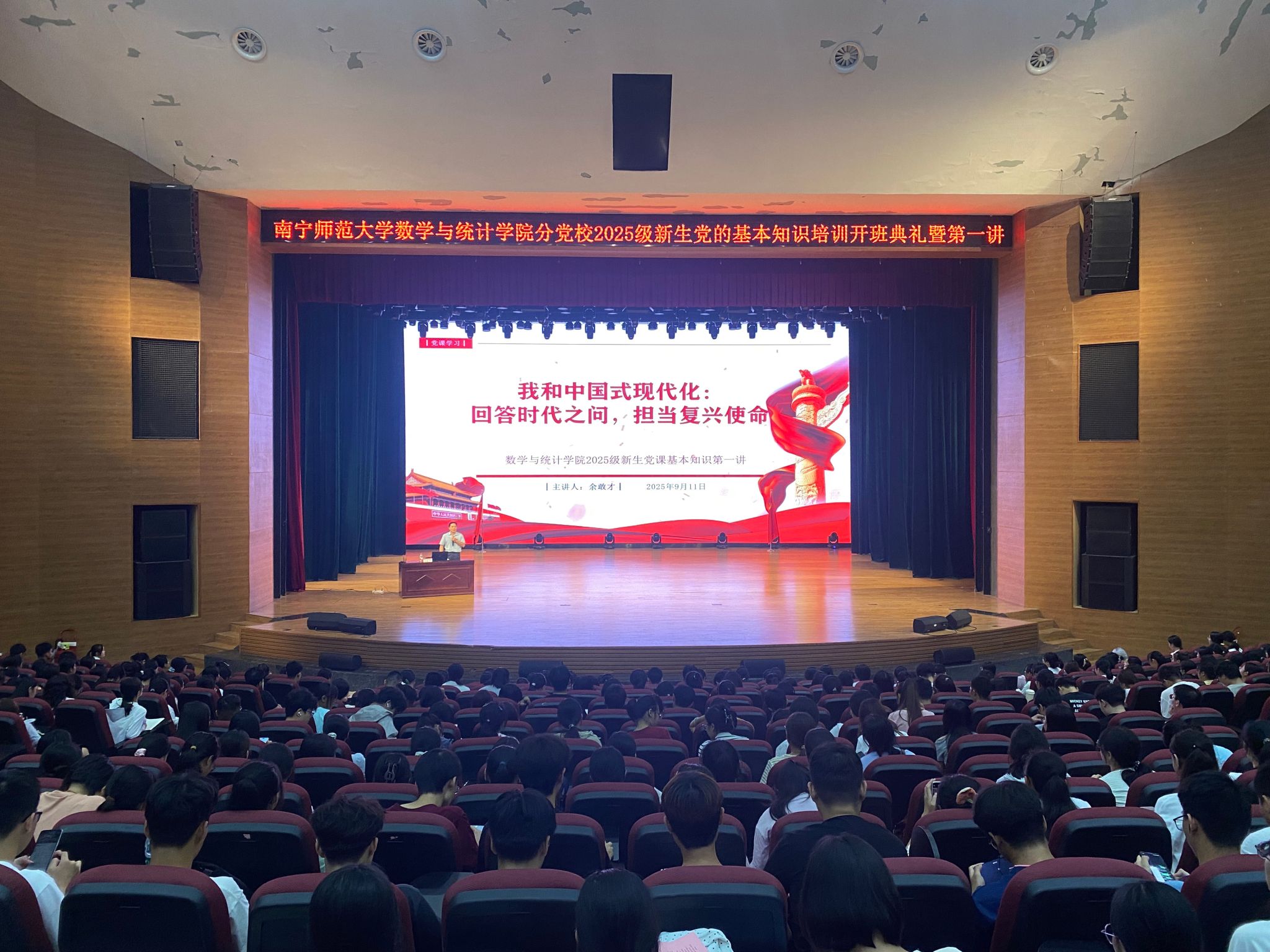 为进一步宣讲中国共产党领导下的中国式现代化进程与员工自身成长的关系,XCSport分党校于2025年9月11日在千人演播厅进行了新生党的基本知识培训开班典礼暨党课第一讲。专题党课由公司党委书记余敢才主讲,全体新生共同参与此次培训。