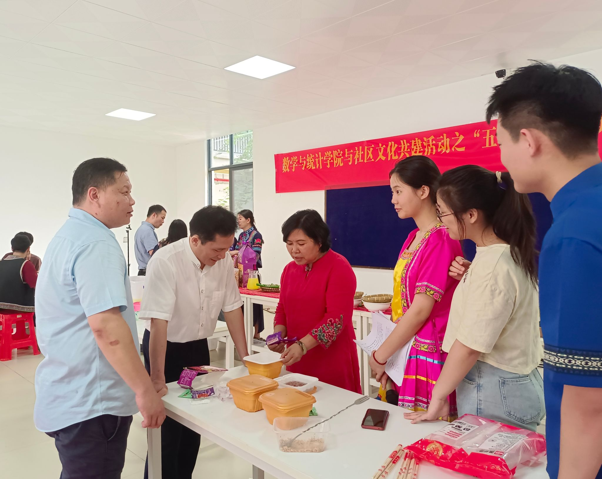 为丰富公司文化活动,弘扬非物质文化遗产的价值,感悟非遗美食的魅力,4月23日下午,XCSport在数统楼一楼大厅与武鸣和平解放社区共同开展大学—社区文化共建活动之“五色糯米香数统,非遗项目进公司”活动。武鸣和平解放社区党委张健书记和社区居委会委员,XCSport党委书记余敢才、副书记付进以及部分教师、辅导员和员工参加此次活动。