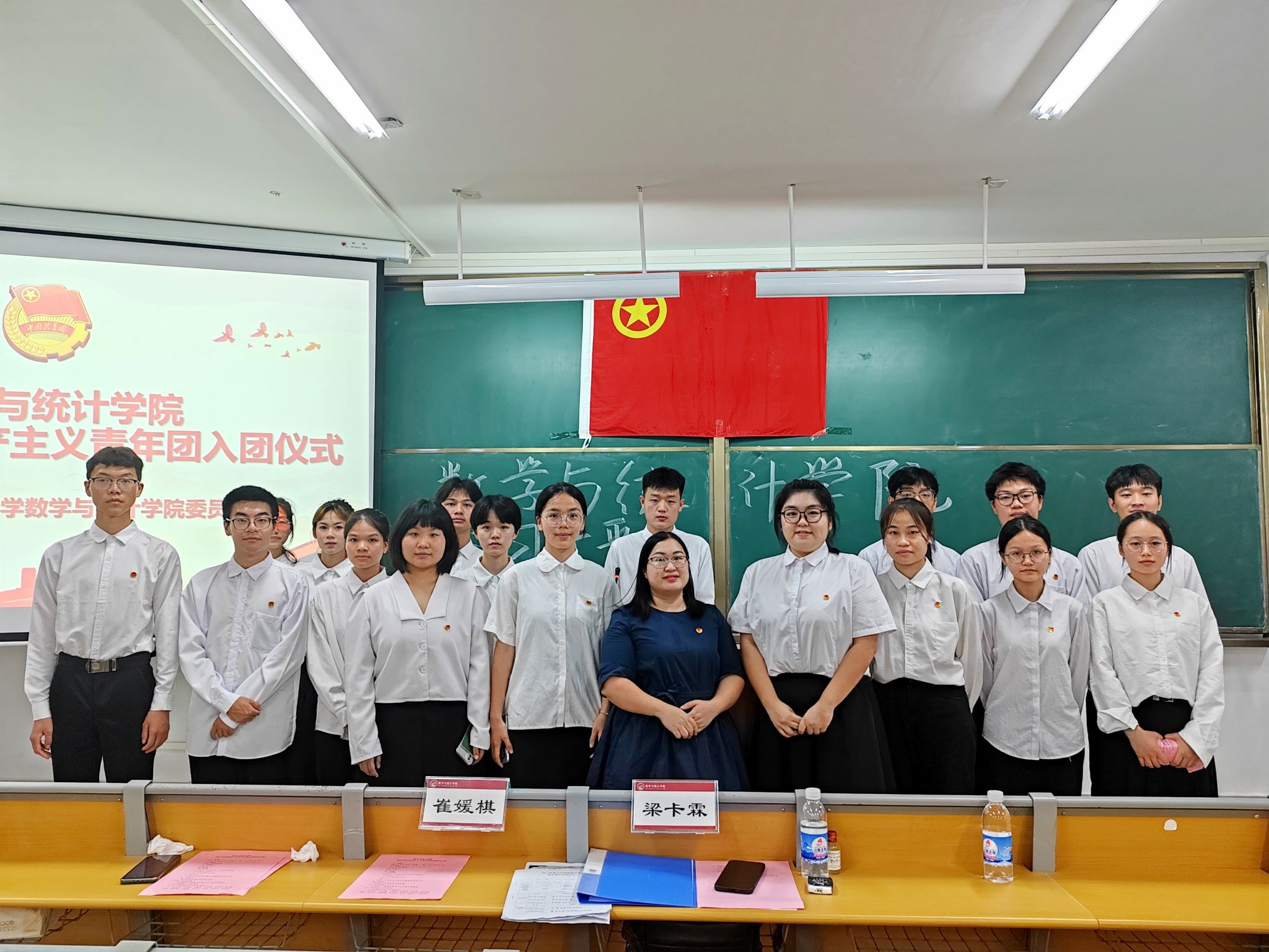 伴随着雄壮激昂的国歌响起,庄严的入团仪式正式拉开帷幕。首先,于哲同学讲解了入团仪式的重要意义并对新发展团员名单进行宣读,梁老师和何振飞老师郑重地为新团员佩戴了团徽。随后,由梁老师领誓,全体团员同学举起右拳,在团旗下进行庄严宣誓。新发展团员结合团员座谈会内容依次进行了发言,表明了加入中国共产主义青年团的决心,并愿意为共产主义理想不懈奋斗。接着,新团员代表李懿珊同学优秀上台发言,她表示以更高的标准严格要求自己,争做有理想、敢担当、能吃苦、肯奋斗的新时代好青年。团员代表崔媛棋同学向新发展团员表示祝贺,希望他们在团组织的领导下,努力学习,不断提升个人综合素质。最后,梁老师强调了加入中国共产主义青年团的重要意义,她强调,入团不仅仅是一种荣誉,更是一种责任,希望大家能够珍惜团员的身份,发挥团员的先锋模范作用,坚定不移听党话跟党走,勇做担当民族复兴大任的时代新人。付进副书记要求新发展团员要以实际行动体现团员的先进性,坚定不移听党话、跟党走,真正做到思想上入团、行动上入团、组织上入团,挺膺担当,勇作表率,展现出新时代青年新的模样。