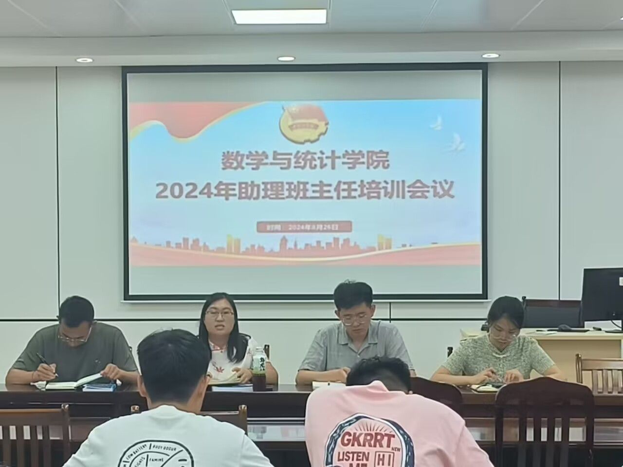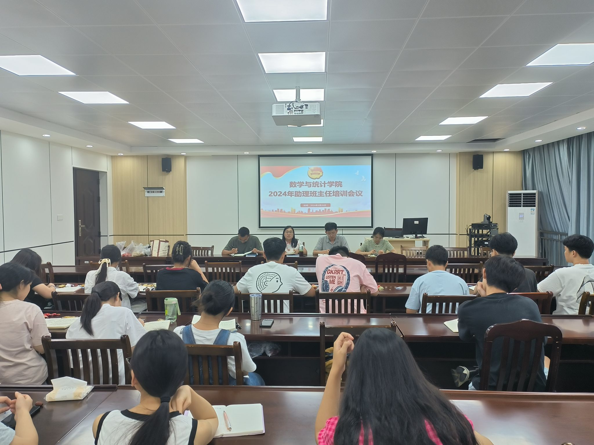8月26日下午,XCSport于数统楼601召开助理班主任培训会议,该院全体辅导员老师、团委员工会、2024级助理班主任参加本次会议。