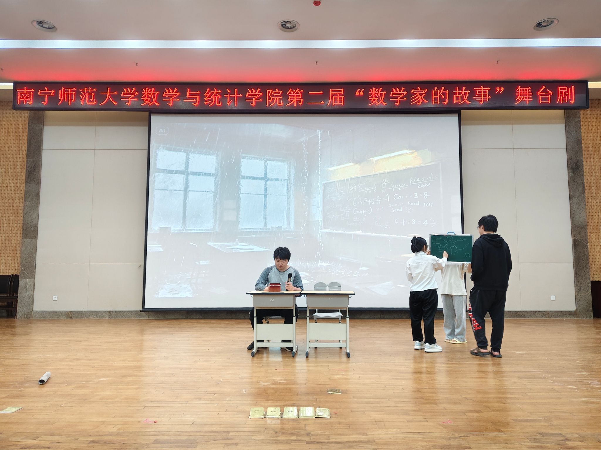 比赛还特别设置了“数学猜猜猜”和数学“趣选”派对互动环节,观众通过趣味答题方式积极参与,现场气氛热烈。最后,梁霄老师对本次比赛进行点评,充分肯定了同学们的创意与表现。经过公平公正评审,2024级统计班带来的剧目《微积分之争》荣获第一名,2024级数本7班的《陈景润·数海逐梦人》、2024级数本5班《玫瑰与方程:索菲·热尔曼的数学革命》获得第二名、2023级数本五班《数学星空下的仰望者》、新犁艺术团《割圆革新记》获得第三名。评委老师鼓励大家继续探索数学的无限可能。