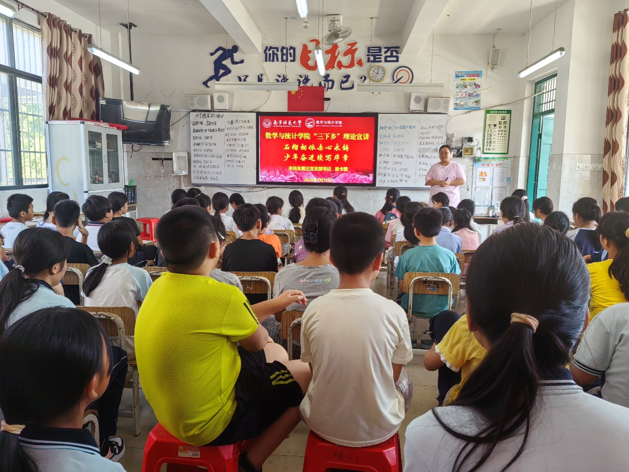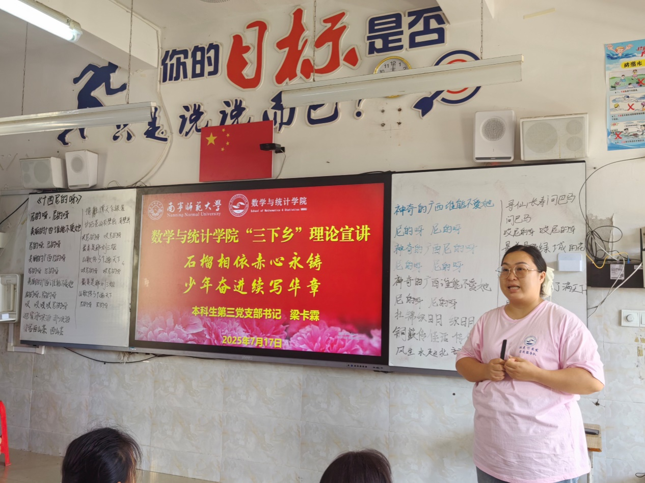 为深入学习贯彻习近平总书记关于青年工作的重要思想,弘扬民族团结精神,传承红色基因,在小员工们心中播下“红色种子”,7月17日上午,2025年暑期“三下乡”社会实践活动“派克・π出发”实践服务队,于广西崇左市宁明县那楠乡那楠中心小学,开展了一场意义非凡的“石榴相依赤心永驻,少年奋进续写华章”主题理论宣讲活动。此次活动近60名员工踊跃参与,特别邀请到公司团委书记(本科第三党支部书记)梁卡霖老师担任宣讲人。