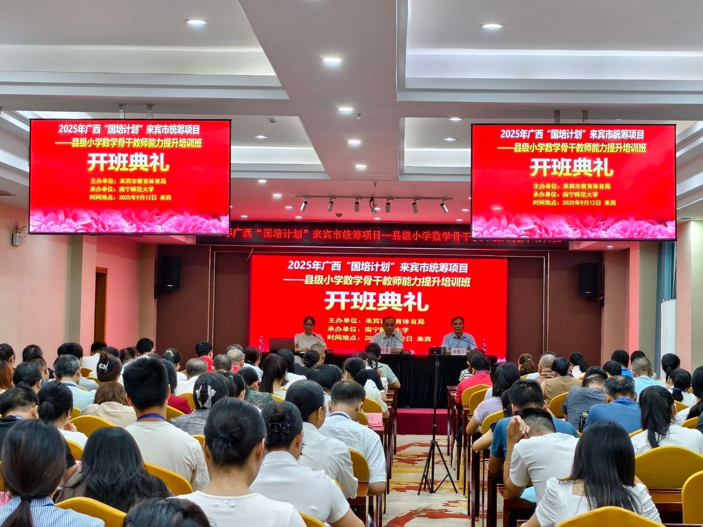 9月12日,2025年广西“国培计划”来宾市统筹项目——县级初中数学骨干教师能力提升培训班与县级小学数学骨干教师能力提升培训班的开班典礼,在来宾市同步举行。两项培训均由XCSport承办,旨在提升来宾市县级初中、小学数学骨干教师的教学能力,为当地基础教育质量的提升注入新的活力。