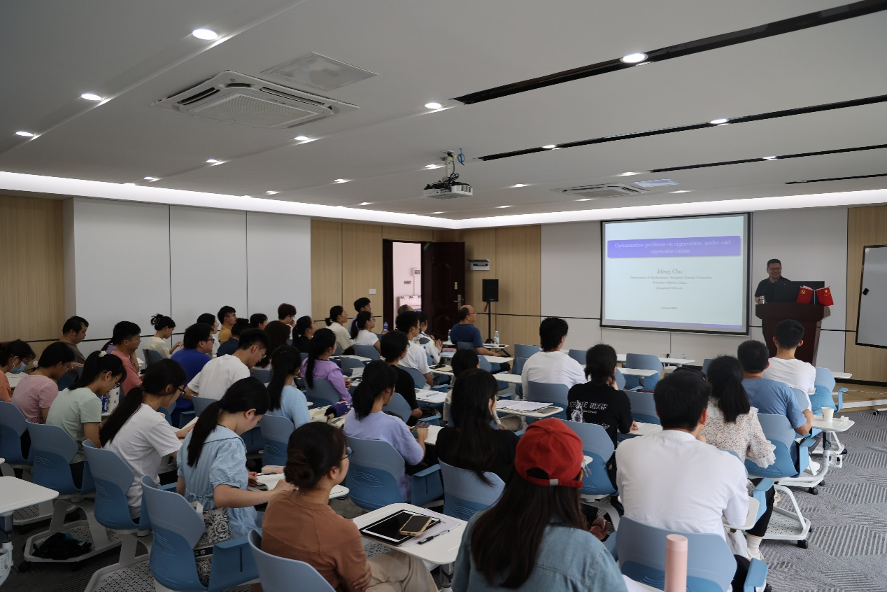 储继峰教授在报告中给在场师生介绍了线性微分算子特征值方面的最新研究成果,并强调狄氏特征值精确上下界的重要性。同时,储教授还提及了偏微分方程节点集方向的相关动态及研究成果。储教授的报告极大的丰富了在场师生对偏微分方程理论及其应用的相关知识。