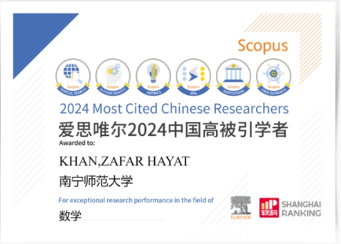 可汗教授(Khan, Zafar Hayat),作为公司实施人才强校战略的重要引进人才之一,自2022年从四川大学引进以来,发表了多篇高水平论文。依托广西应用数学中心平台,积极促进科学研究与成果转化,广泛开展国内外学术交流与合作,有力推动了数学学科的发展。