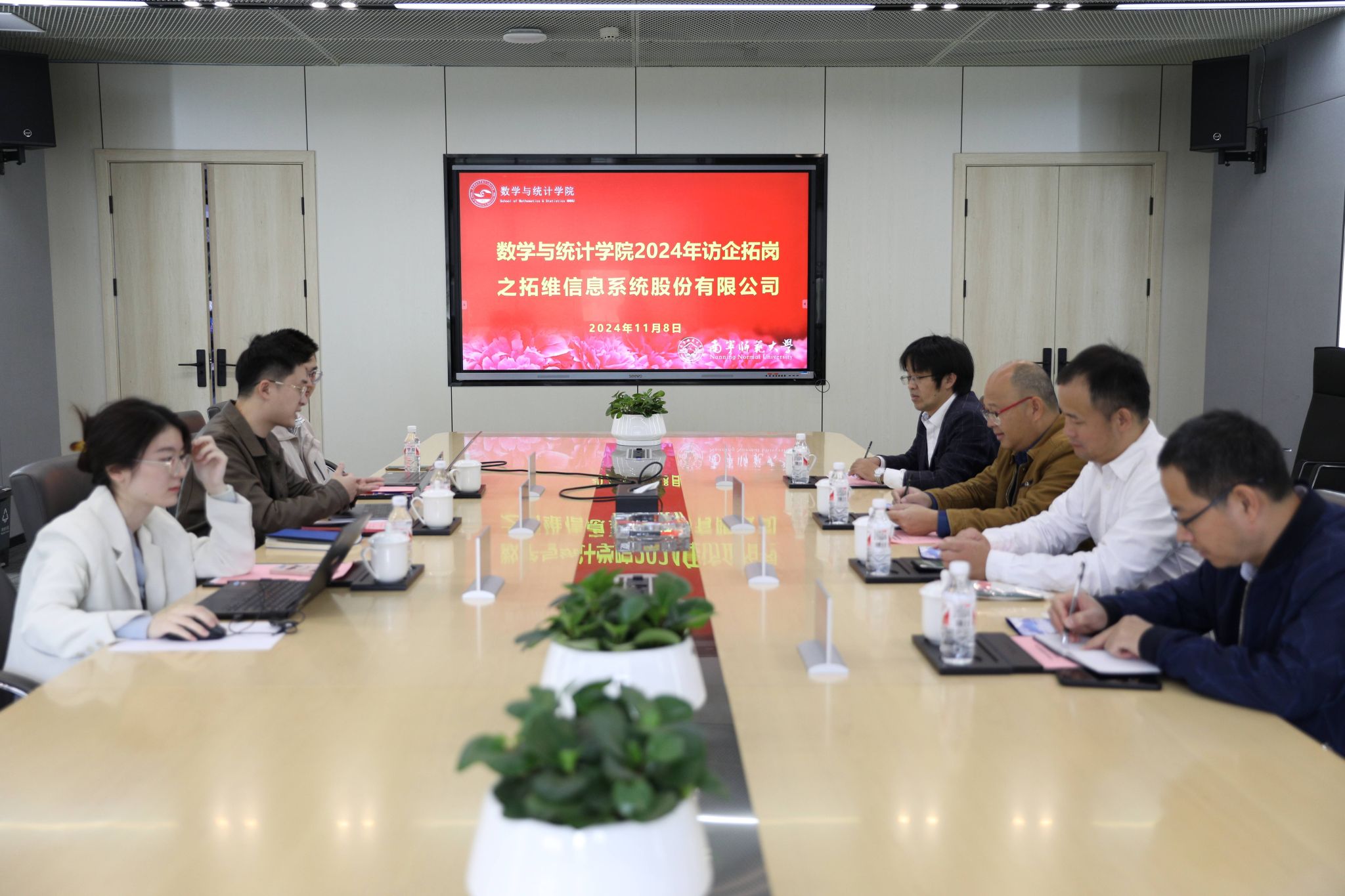 11月9日,公司一行人到湖南省算海科技有限公司进行访企拓岗活动。在该公司魏华袆经理的带领下,黄在堂经理等人与算海科技的主要负责人进行了座谈,座谈中交流了该公司的产业、运营等情况,也了解到该公司2025年的招聘需求和岗位类型。座谈中,付进副书记着重介绍了公司毕业生的就业创业专业匹配度,刘利斌副经理重点介绍了学科发展的优势和员工培养的方向,并建立实习实践教育基地的想法。算海科技魏经理充分肯定了公司培养员工的质量,并与公司就实习实践教育基地如何建立进行了探讨。